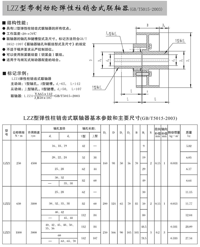 瑞安市寶德隆機械配件有限公司提供LZZ型帶制動輪彈性柱銷齒式聯(lián)軸器具有拆裝方便,快速安裝等特點,廣泛用于連接/固定輪轂孔和零件的軸,例如齒輪,錐齒輪,鏈輪,葉輪,凸輪,皮帶輪和飛輪等軸的聯(lián)結(jié)固定,咨詢電話:18906872378