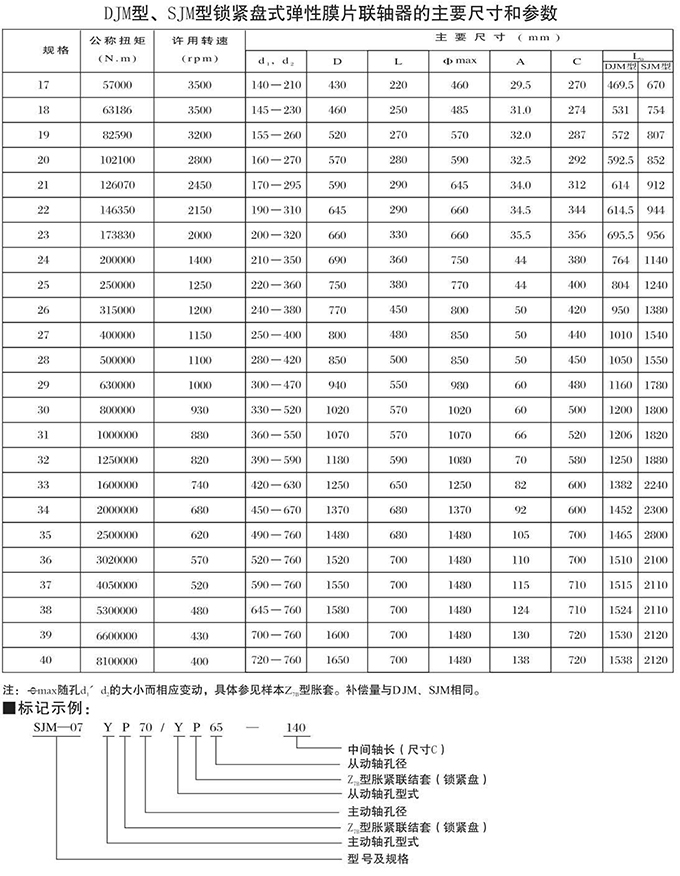 瑞安市寶德隆機械配件有限公司提供DJM型鎖緊盤式單型彈性膜片聯(lián)軸器SJM型鎖緊盤式雙型彈性膜片聯(lián)軸器具有拆裝方便,快速安裝等特點,廣泛用于連接/固定輪轂孔和零件的軸,例如齒輪,錐齒輪,鏈輪,葉輪,凸輪,皮帶輪和飛輪等軸的聯(lián)結(jié)固定,咨詢電話:18906872378
